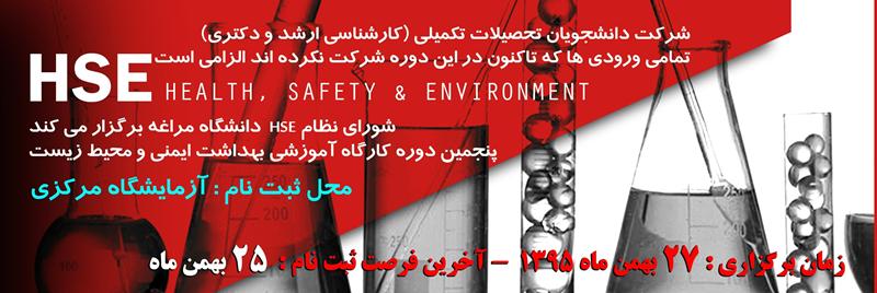 پنجمین دوره آموزشی بهداشت، ایمنی و محیط زیست (HSE) روز چهارشنبه ۲۷ بهمن ماه برگزار خواهد شد. - آزمایشگاه مرکزی دانشگاه مراغه